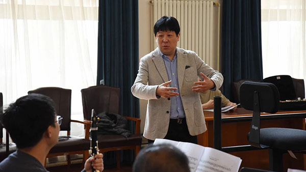 中央音乐学院巴松教授、博士生导师李岚松已经抵青,今日指导乐团的木管音乐家们排练。